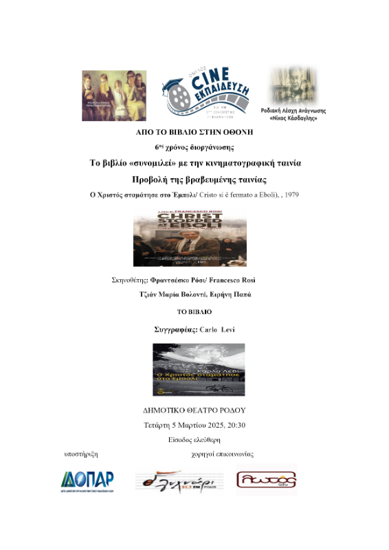 Η εκδήλωση πραγματοποιείται με τη συνεργασία του Ομίλου CINE-ΕΚΠΑΙΔΕΥΣΗ, του Ιταλικού Μορφωτικού Ινστιτούτου Αθηνών, τον συντονισμό του ελληνο-ιταλικού συλλόγου «Φίλων της Λέρου» και σε συνδιοργάνωση με τη φοιτητική ...