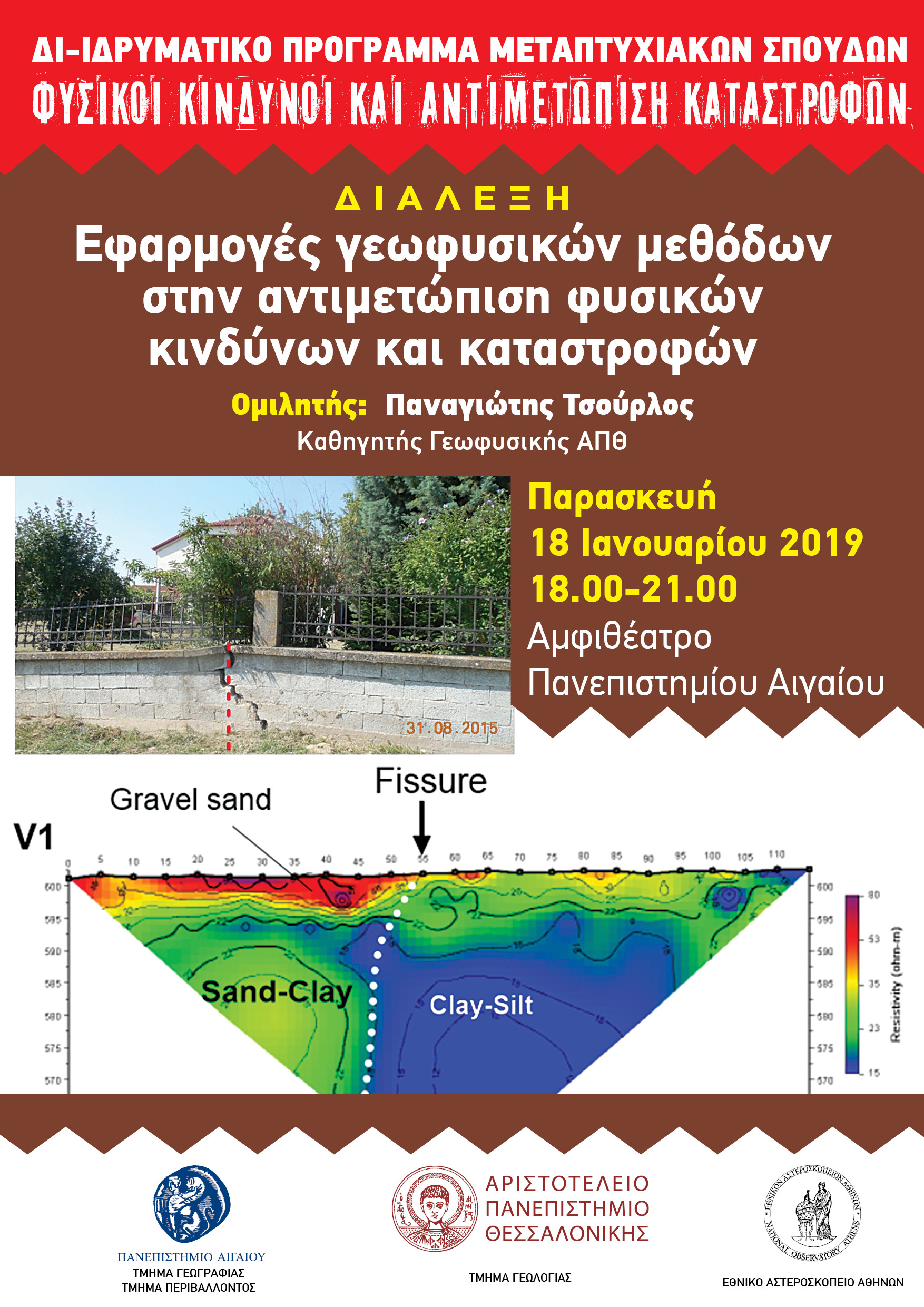 με θέμα «Εφαρμογές γεωφυσικών μεθόδων στην αντιμετώπιση φυσικών κινδύνων και καταστροφών»