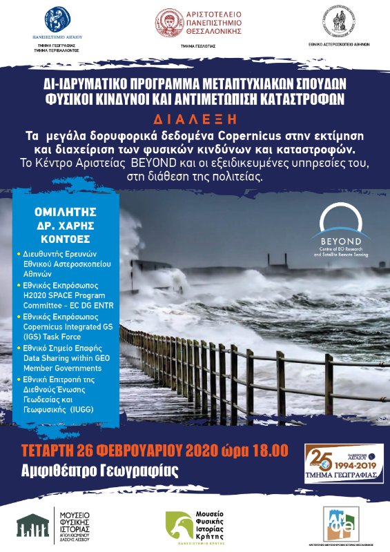 «Τα μεγάλα δορυφορικά δεδομένα Copernicus στην εκτίμηση και διαχείριση των φυσικών κινδύνων και καταστροφών »