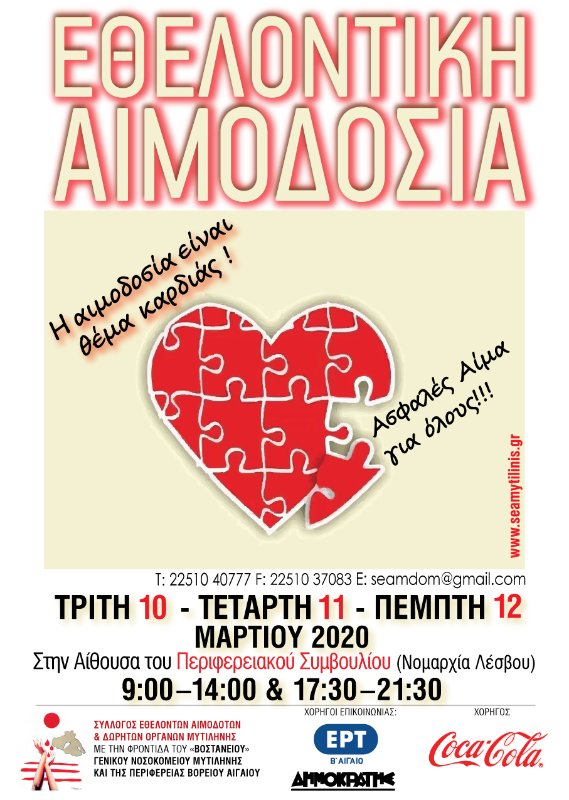 Η Αιμοδοσία γίνεται με την Φροντίδα του Νοσοκομείου Μυτιλήνης και την Φιλοξενία της Περιφέρειας Βορείου Αιγαίου!