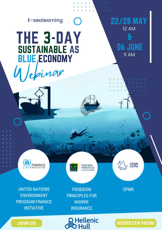 On May 22 & 28 and June 6, 2024, the United Nations Environment Programme Finance Initiative, the Poseidon Principles for Marine Insurance, and the CPMR will deliver a guest lecture to students, researchers, and professors from the University of the Aegean, the World Maritime University and the University of Piraeus in Greece, as part of Hellenic Hull's E-sealearning program. The lecture will focus on ESG, Sustainability Economy, Climate Change, IMO’s New Regulations, Marine Insurance, Industry’s Initiatives, EU maritime policies and the challenges faced by island regions, emphasizing the development of a sustainable blue economy. The aim of these lectures is to support ongoing professional development in the maritime sector and address the multiple challenges in maritime areas.