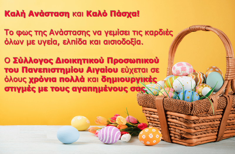 Ο Σύλλογος Διοικητικού Προσωπικού του ΠΑ εύχεται καλό Πάσχα και ξεκούραστες διακοπές σε όλους!