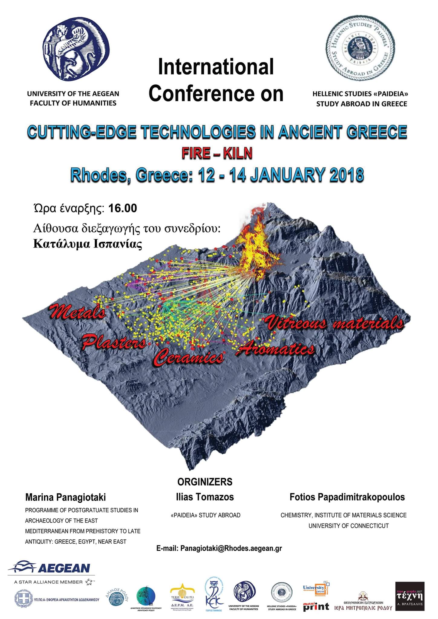 Το ΠΡΟΓΡΑΜΜΑ ΜΕΤΑΠΤΥΧΙΑΚΩΝ ΣΠΟΥΔΩΝ «ΑΡΧΑΙΟΛΟΓΙΑ ΑΝΑΤΟΛΙΚΗΣ ΜΕΣΟΓΕΙΟΥ ΑΠΟ ΤΗΝ ΠΡΟΪΣΤΟΡΙΚΗ ΕΠΟΧΗ ΕΩΣ ΤΗΝ ΎΣΤΕΡΗ ΑΡΧΑΙΟΤΗΤΑ:ΕΛΛΑΔΑ, ΑΙΓΥΠΤΟΣ, ΕΓΓΥΣ ΑΝΑΤΟΛΗ» ΤΟΥ ΤΜΗΜΑΤΟΣ ΜΕΣΟΓΕΙΑΚΩΝ ΣΠΟΥΔΩΝ ΤΗΣ ΣΧΟΛΗ ΑΝΘΡΩΠΙΣΤΙΚΩΝ ΕΠΙΣΤΗΜΩΝ ΤΟΥ ΠΑΝΕΠΙΣΤΗΜΙΟ ΑΙΓΑΙΟΥ ΣΕ ΣΥΝΕΡΓΑΣΙΑ ΜΕ ΤΟ HELLENIC STUDIES “PAIDEIA” STUDY ABROAD IN GREECE ΔΙΟΡΓΑΝΩΝΟΥΝ ΔΙΕΘΝΕΣ ΣΥΝΕΔΡΙΟ ΜΕ ΘΕΜΑ «ΤΕΧΝΟΛΟΓΙΕΣ ΑΙΧΜΗΣ ΣΤΗΝ ΑΡΧΑΙΑ ΕΛΛΑΔΑ» INTERNATIONAL CONFERENCE ON “CUTTING-EDGE TECHNOLOGIES IN ANCIENT GREECE” ΣΤΗ