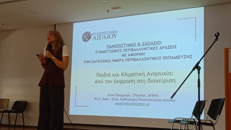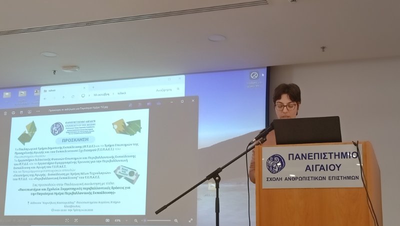 την Παγκόσμια Ημέρα Περιβαλλοντικής Εκπαίδευσης", που πραγματοποιήθηκε στο University of the Aegean - Πανεπιστήμιο Αιγαίου την Τρίτη 14 Οκτωβρίου.